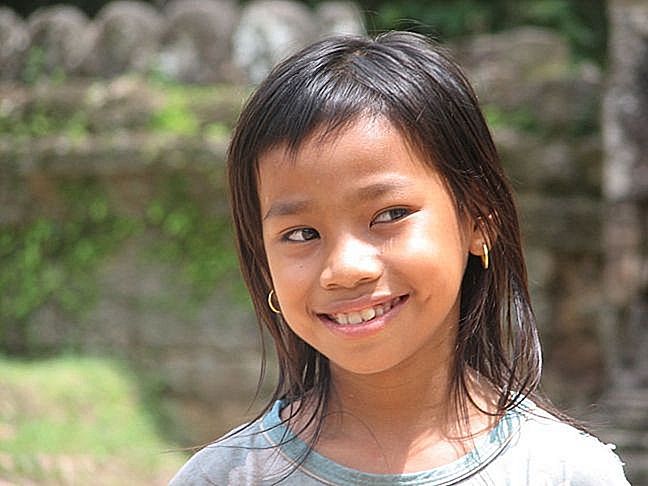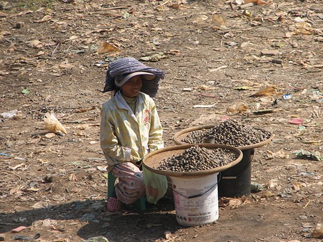 vendeuse du marché de Kampong chnnang, étrangement seule au milieu de l'agitation