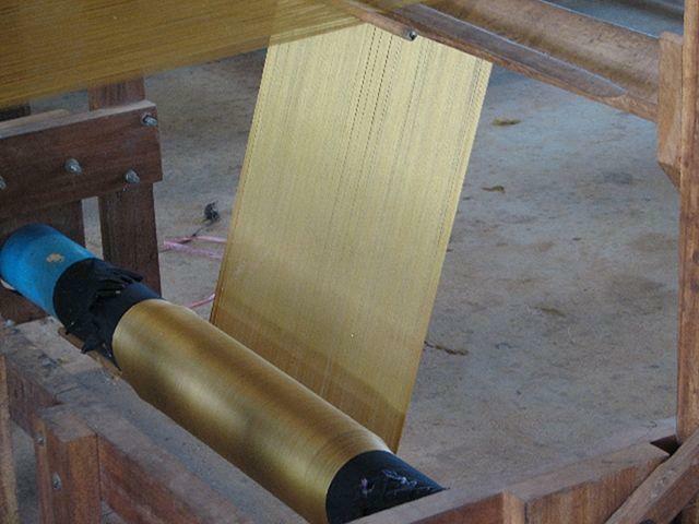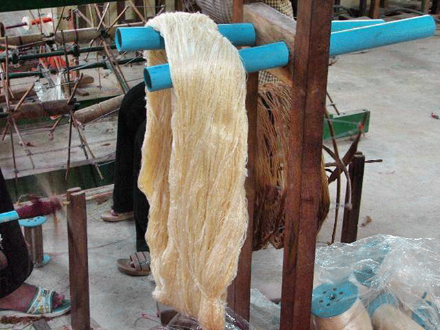 la production de soie redémarre lentement au Cambodge, reconnaissable a son aspect doré au départ